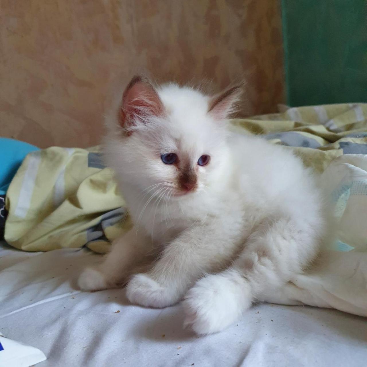 Chaton mâle et femelle Sacré de Birmanie blue Point, 3 mois , (fratrie de 3 mâles et 2 femelles nés le 22 décembre 2025), élevés en famille avec enfants, socialisé dès la naissance, ce son des chatons idéals pour la maison.