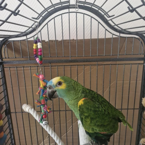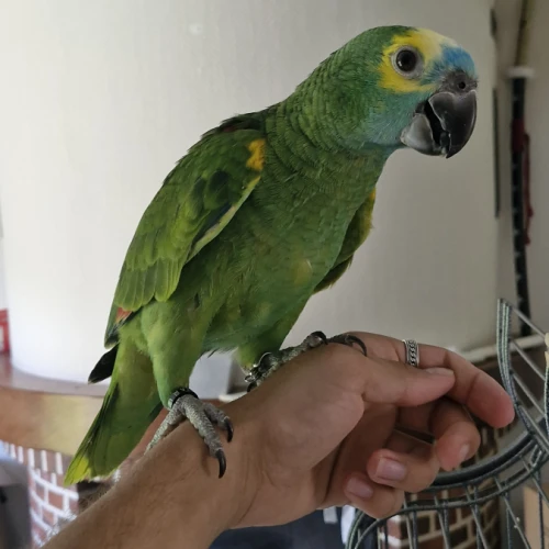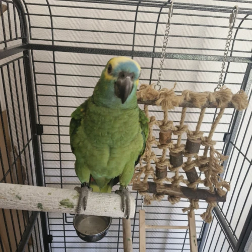 Nous vendons notre mâle Amazone à front bleu, élevé à la main.