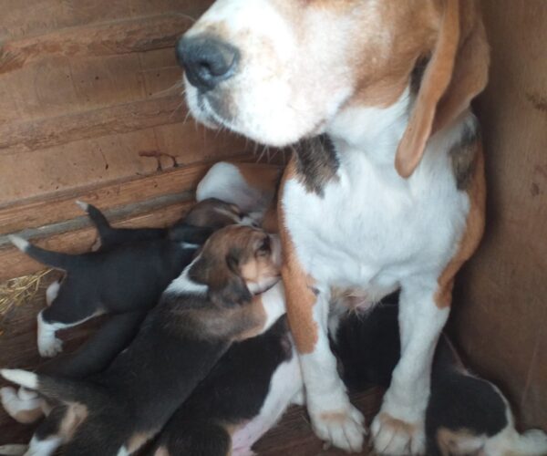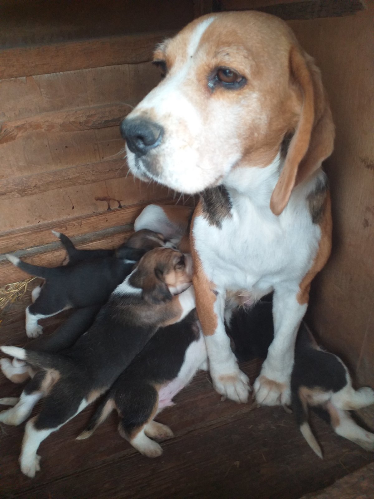 4 MALE AND TWO FEMALE BEAGLES FROM WORKING PARENTS, BORN ON OCTOBER 12. RECEIVING AFTER THE FIRST VACCINE.
