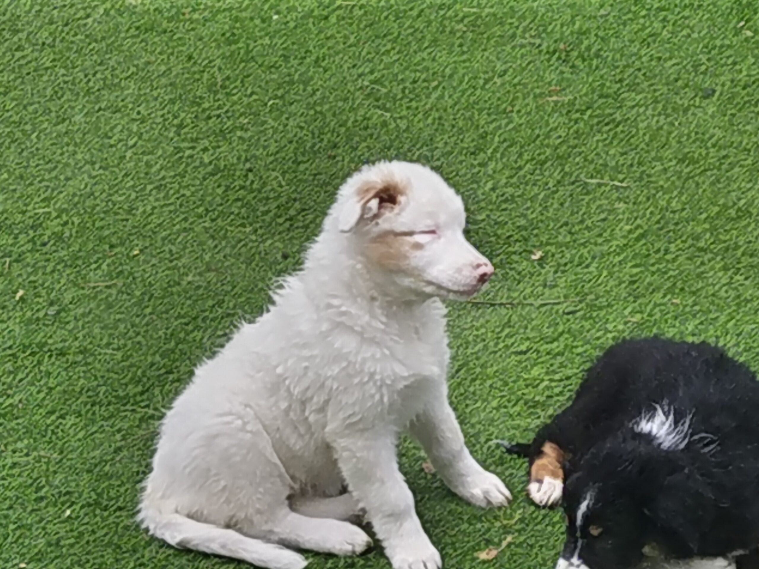 Femelle née le 23/02/26. Robe blanche avec légères tâches rouges, vaccinée, pucee, certificat de bonne santé délivré