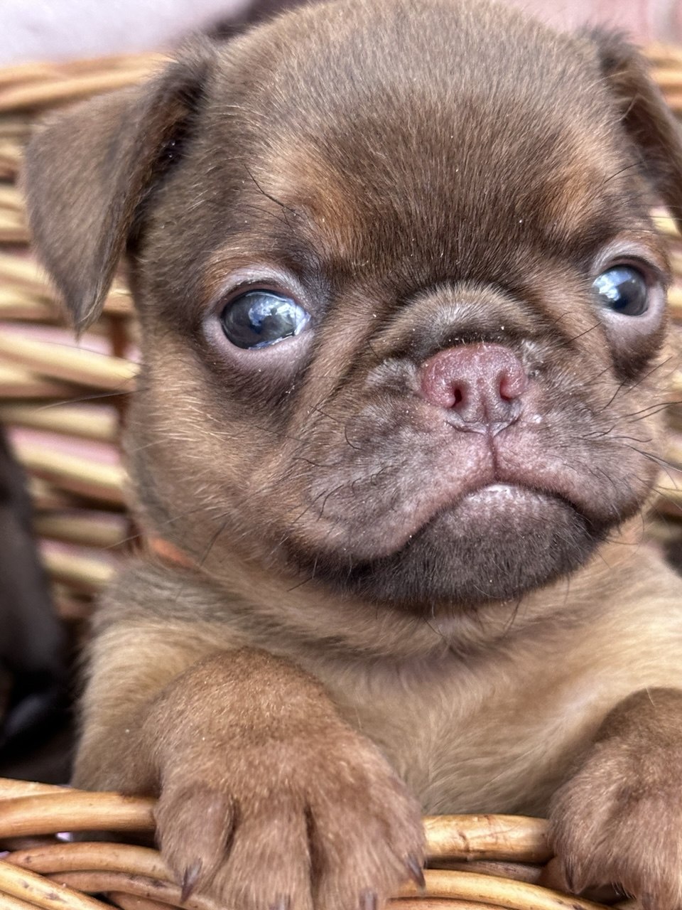 Chocolate Petit Brabançon (Smooth Brussels Griffon) puppies – 3 boys and 1 girl, 1.5 months old, available directly from the breeder as beloved companion pets