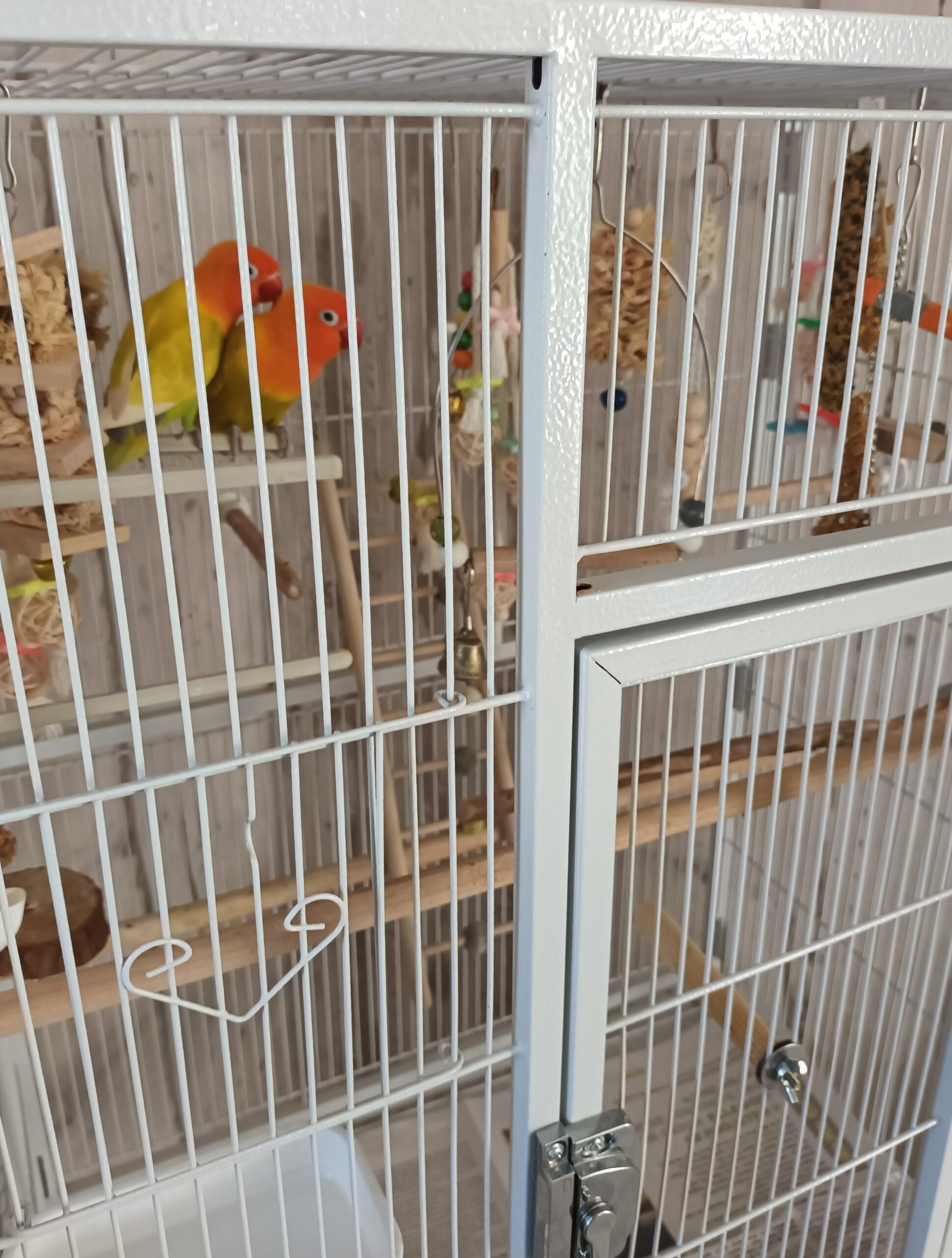 deux inséparable avec cage