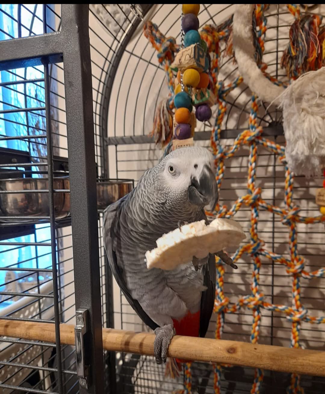 Je propose à l’adoption un perroquet Gris du Gabon, curieux et très sociable.