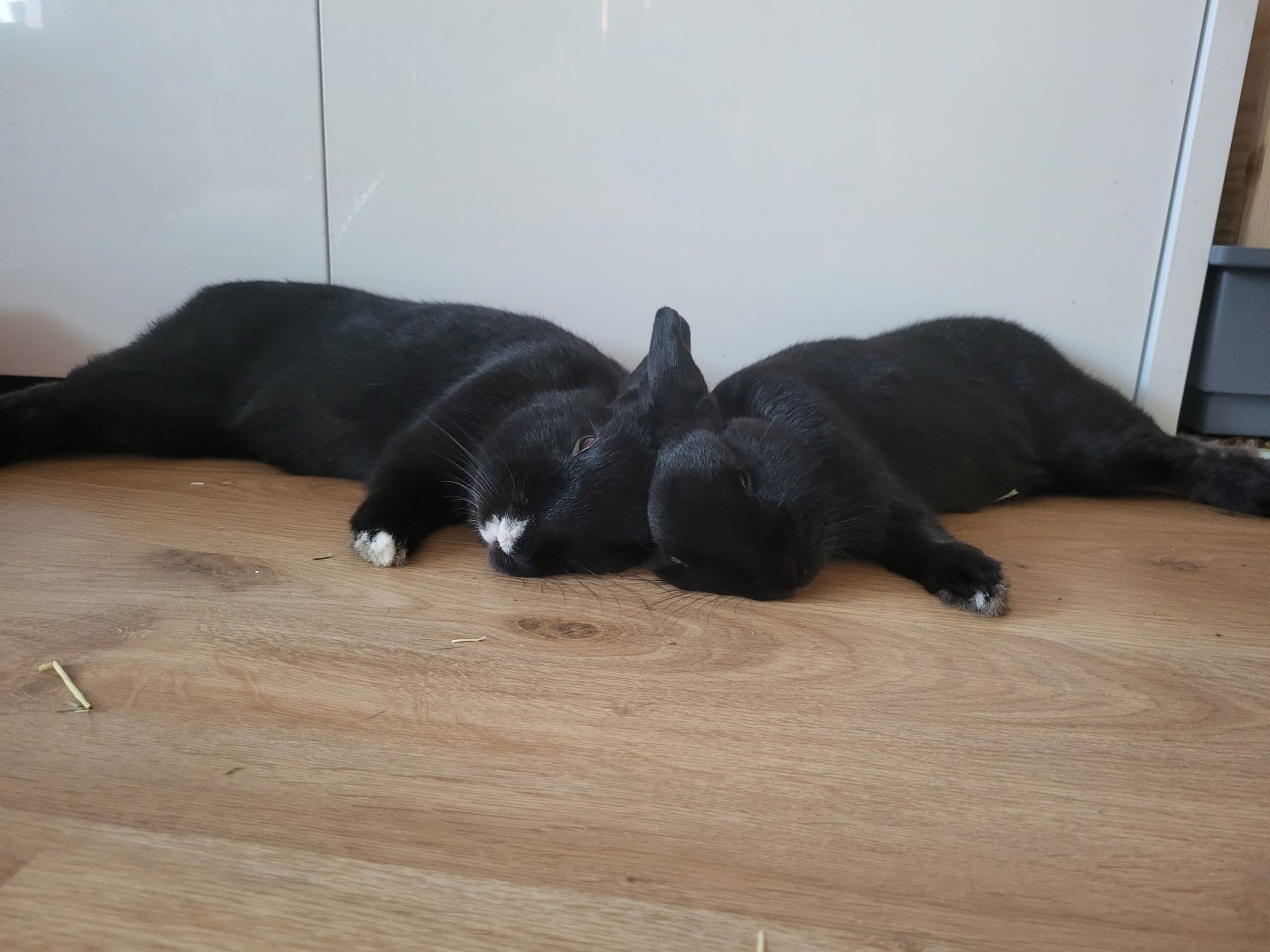 Les deux lapins sont très proches et passent tout leur temps ensemble.