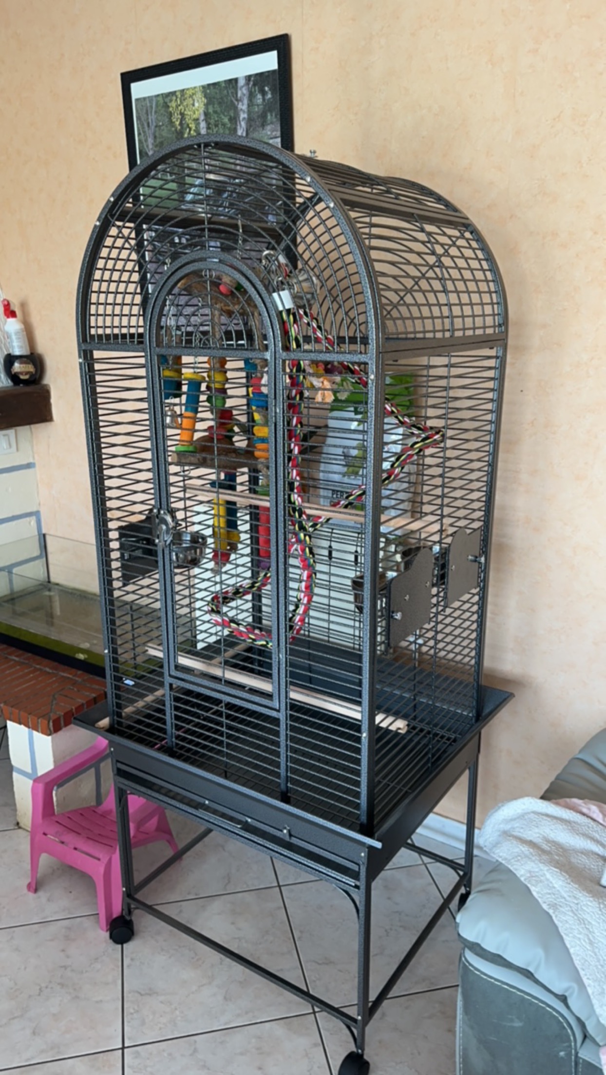 Vendu avec cage et accessoires