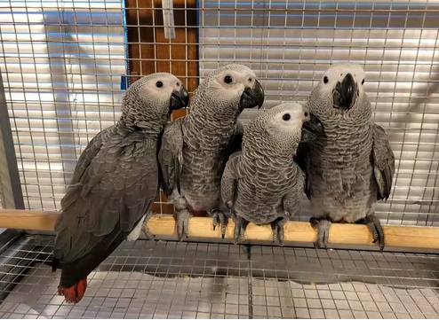 Jeunes perroquets Gris du Gabon apprivoisés.Tous nos perroquets ont été examinés par prise du sang. Certificat du sexage et de teste des maladies, CITES et déclaration de cession. Très sociables, ils viennent sur la main, l’épaule, la tête….très curieux et vraiment avides d’apprendre
