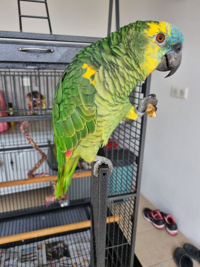 Perroquet amazone à tête bleu élevé à la main, vie en semi-liberté, très sage ne crie pas la nuit , vient quand on appelle. Il a 1 an , bagué, fourni avec certificat de cession.
