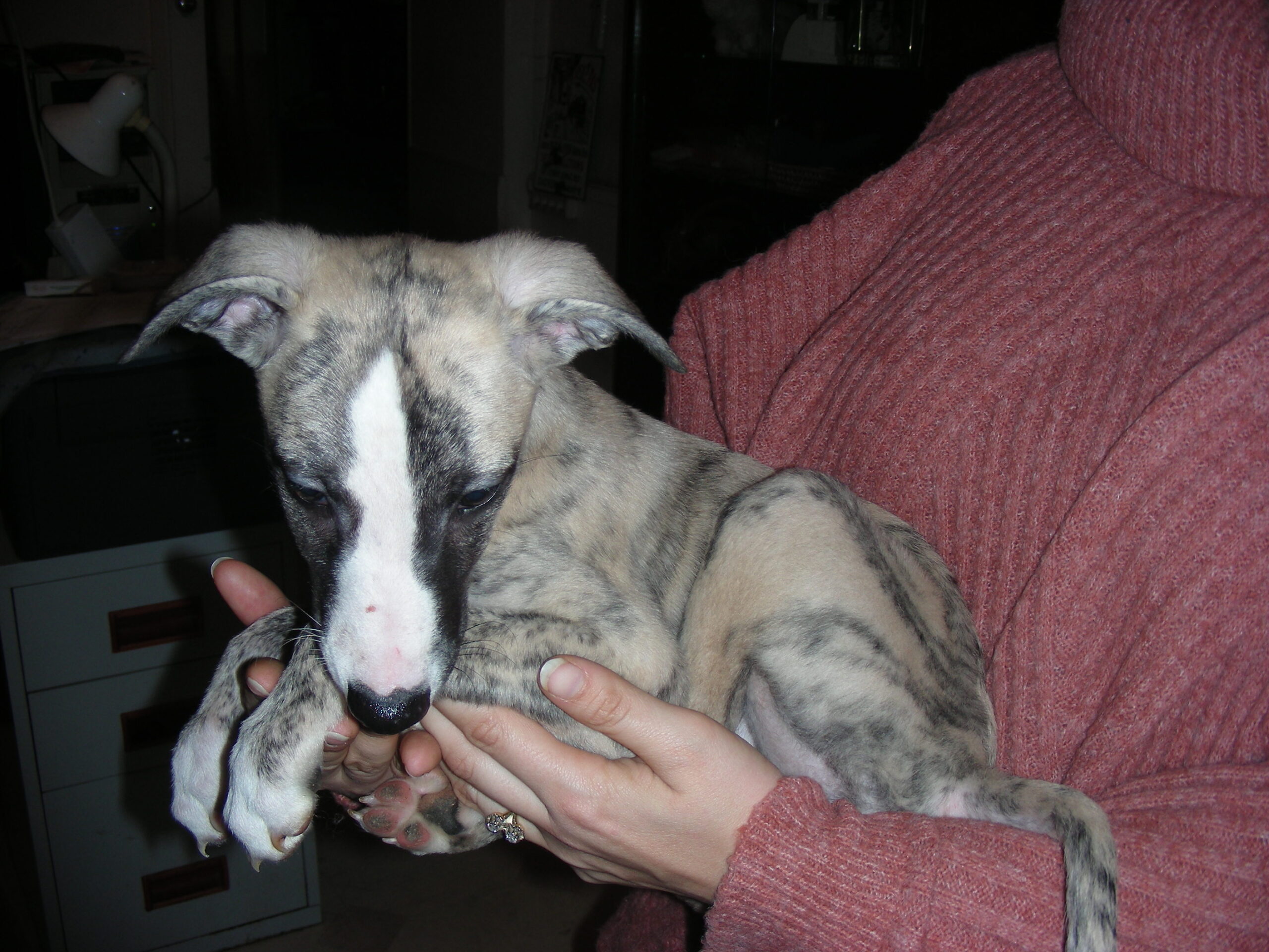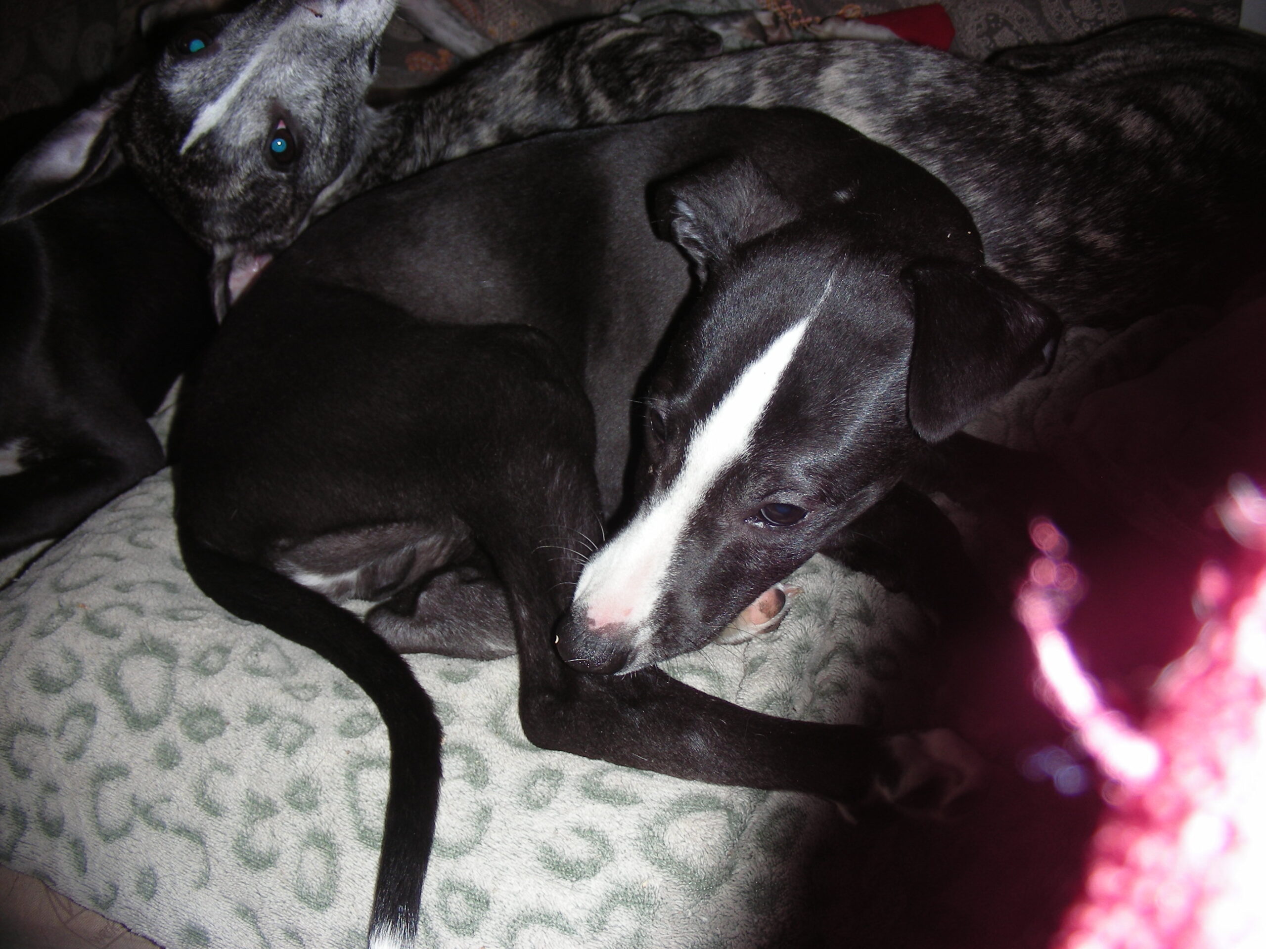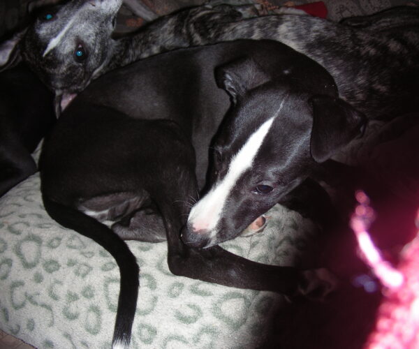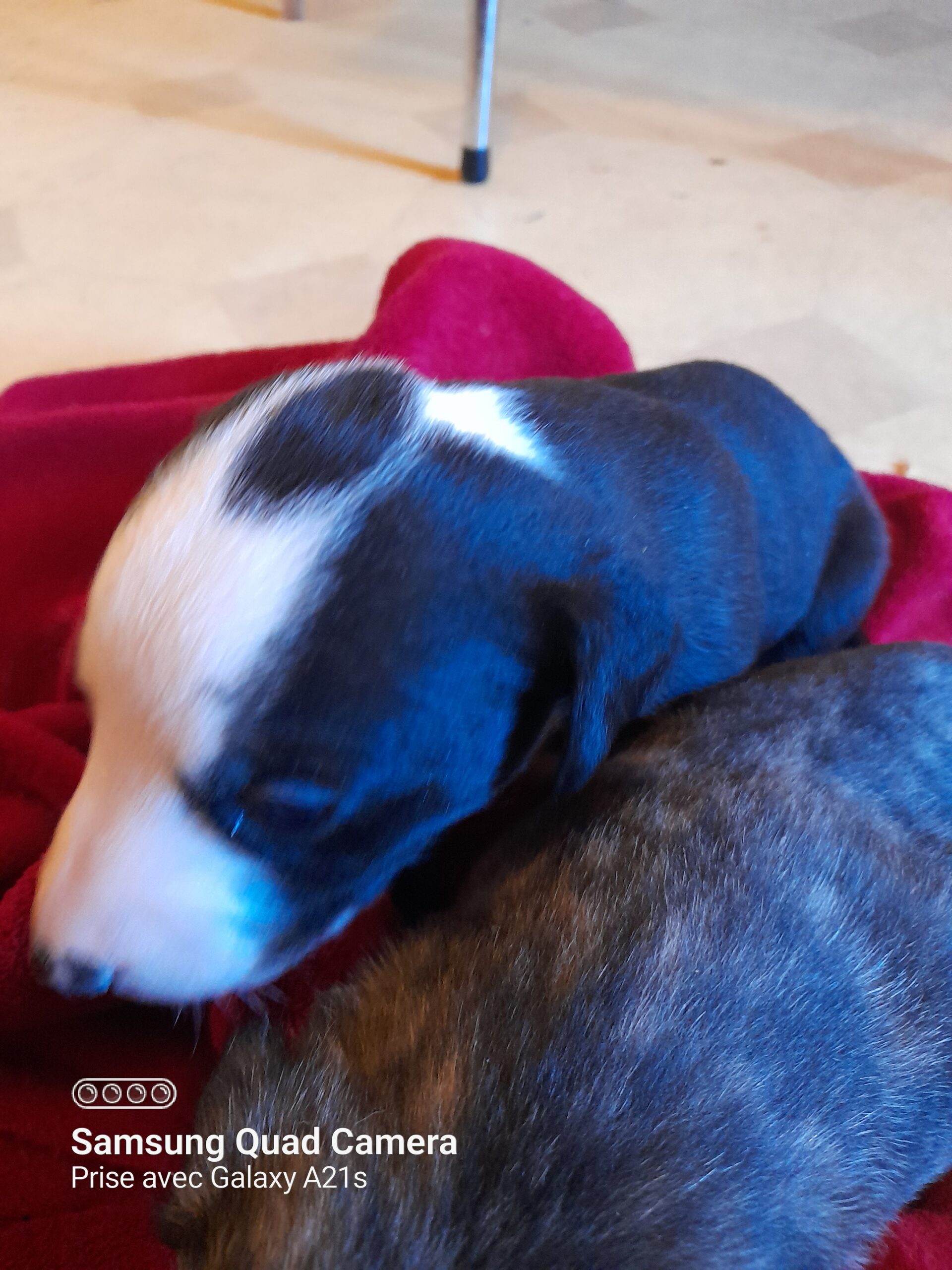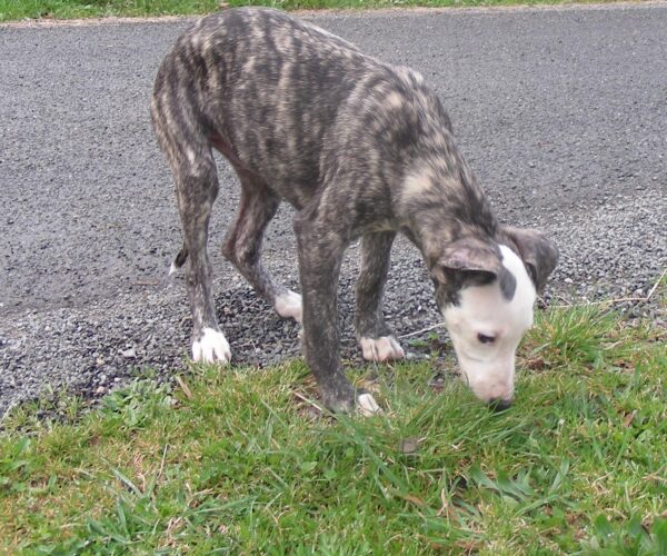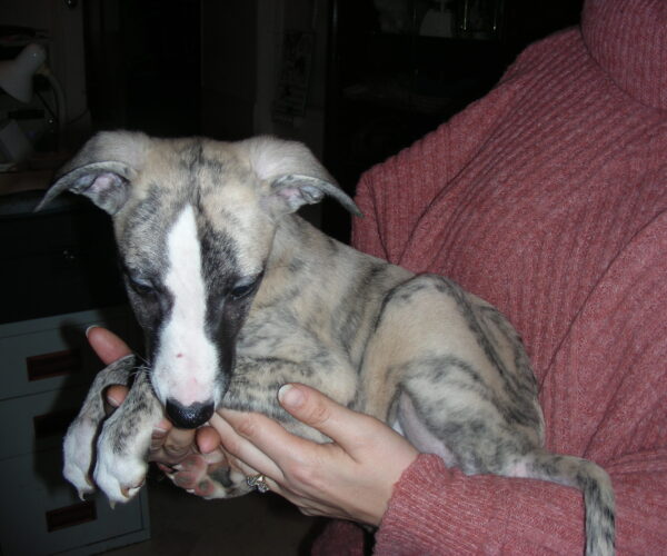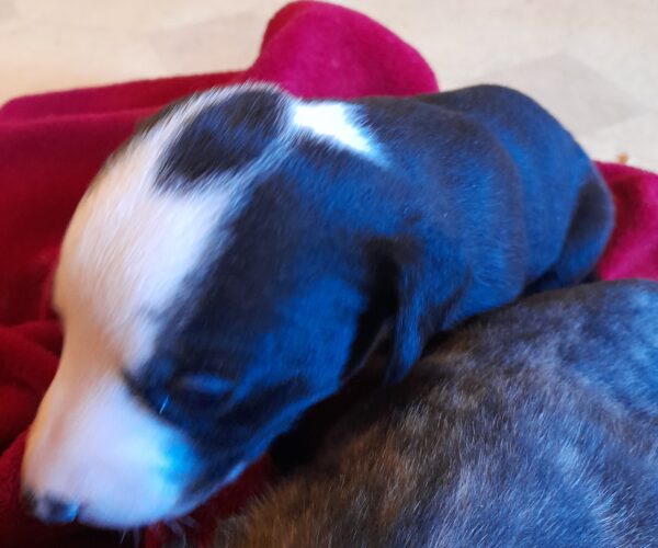 Parents LOF père bringé noir fond sable, mère noire panaché blanche, grands parents blancs panachés bringé bleu/ Bleus.
